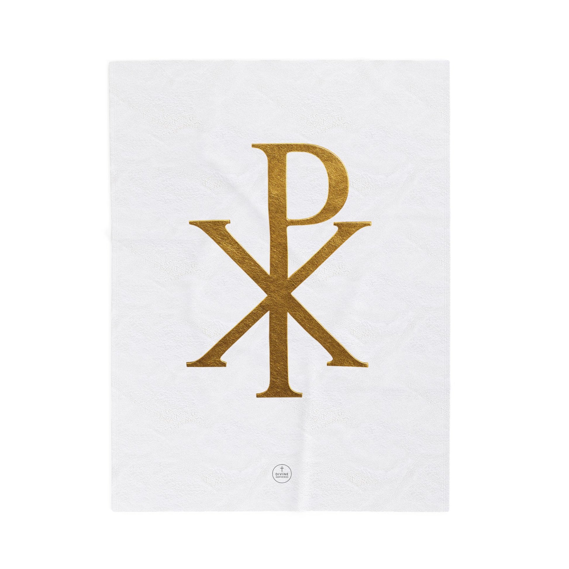 Radiant Faith Plush Blanket – Gold Chi Rho on White
