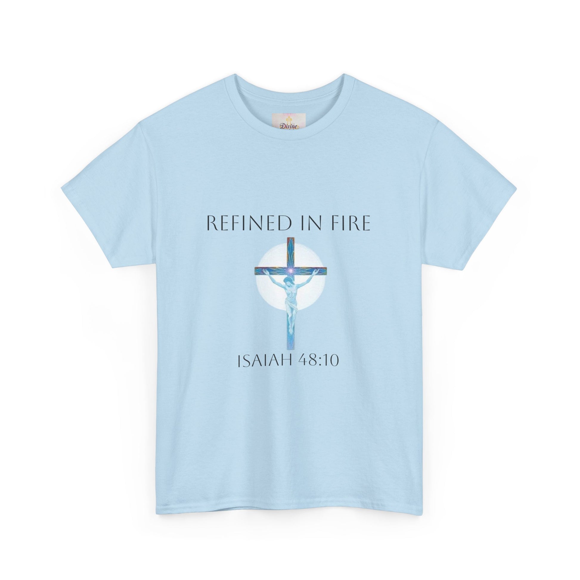 Refined in Fire Christian T-Shirt – Modern Cross Design (Dark Lettering)