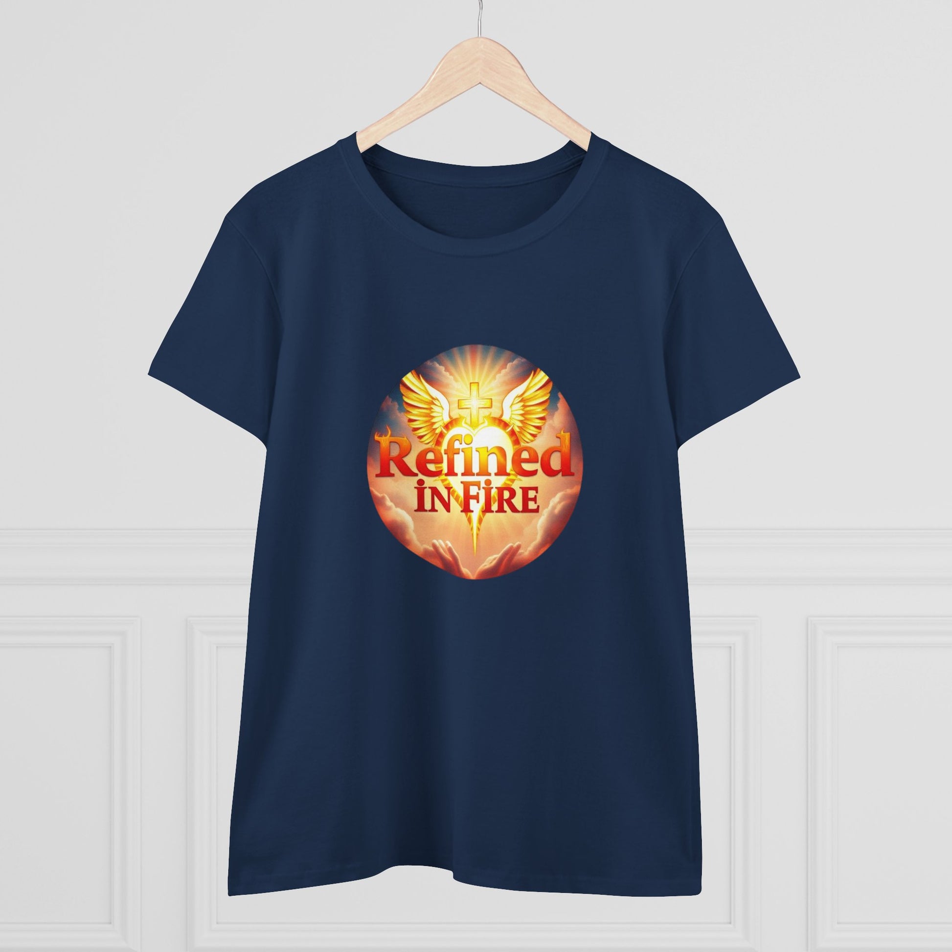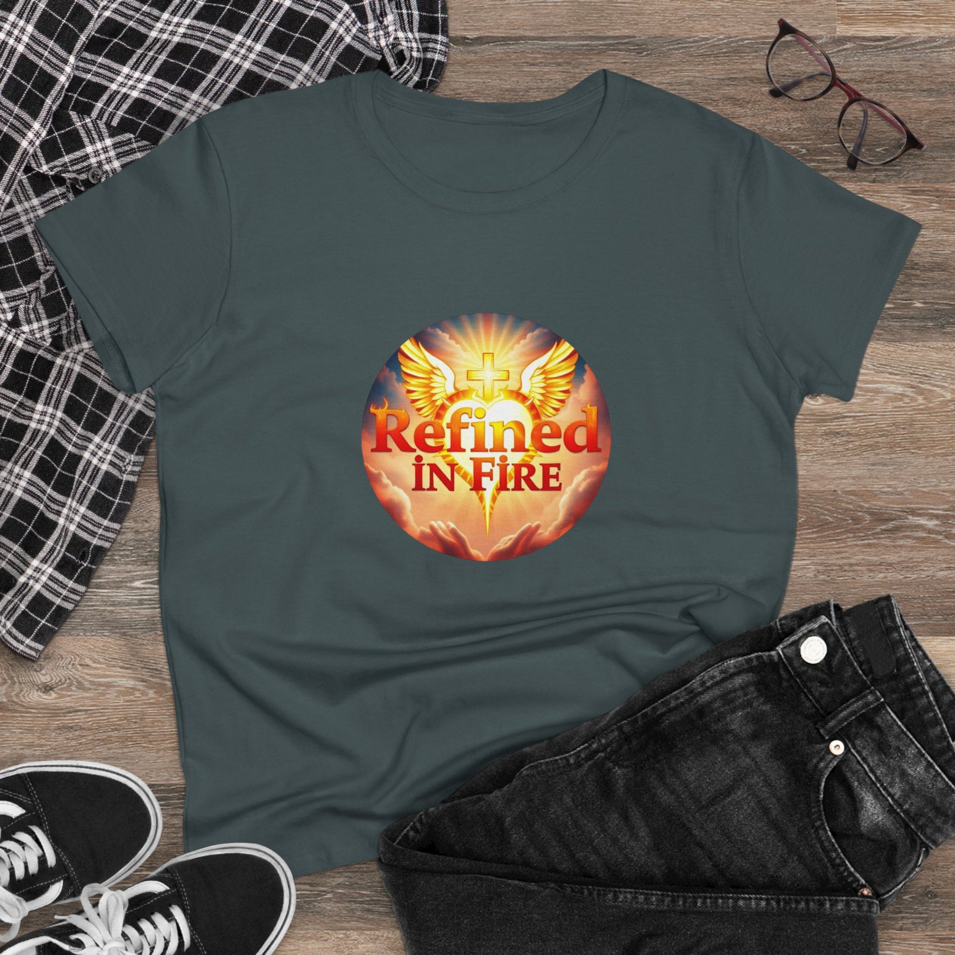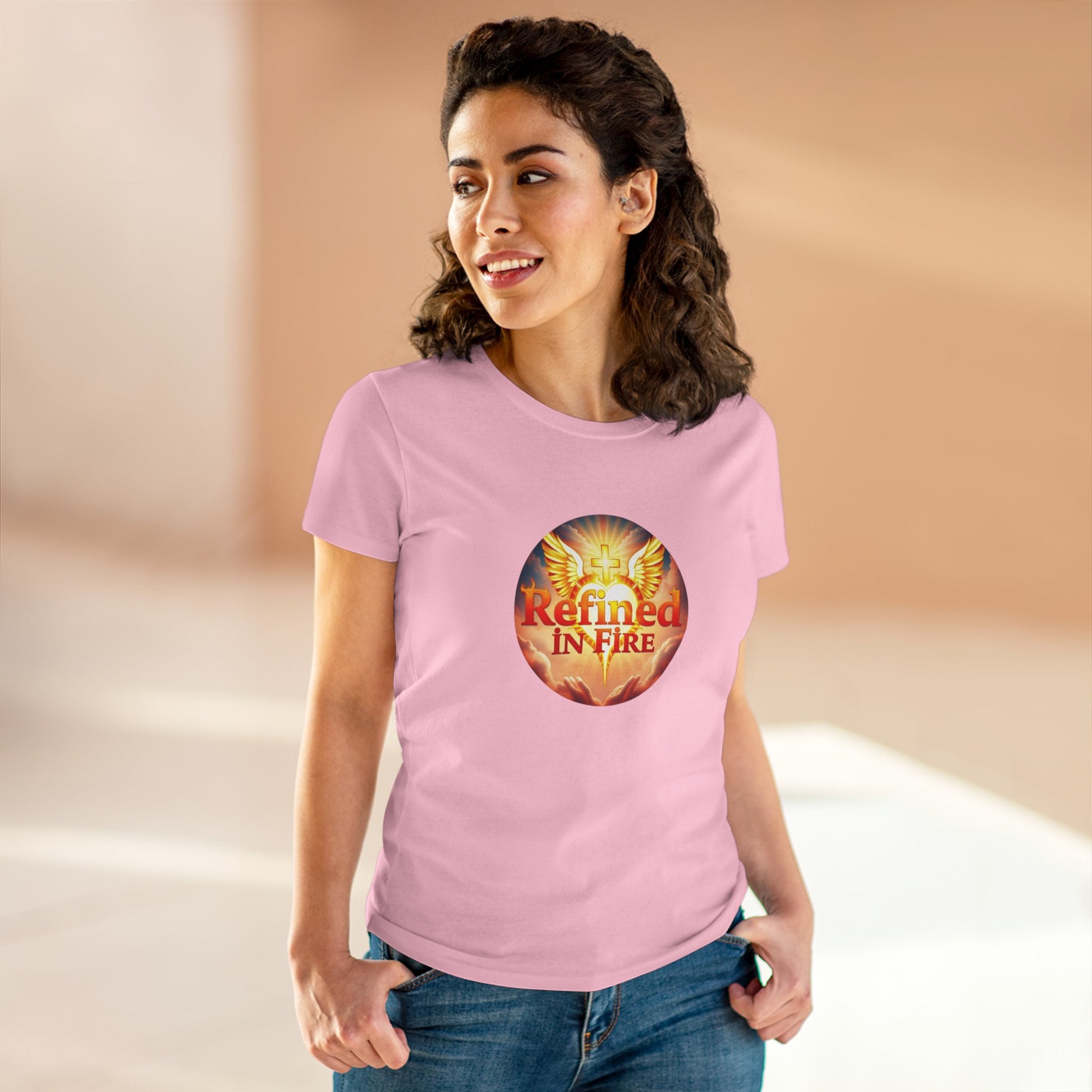Simple. Strong. Sacred. This "Refined in Fire" Women's Tee embraces quiet strength with a divinely inspired design that speaks volumes. Featuring the powerful phrase across the chest, it serves as a steady reminder that true beauty and resilience are forged through life’s trials. Crafted for a sleek, modern silhouette and made from premium cotton, this fitted tee is perfect for everyday wear, spiritual gatherings, or moments when you just need to declare who you are—without saying a word.
