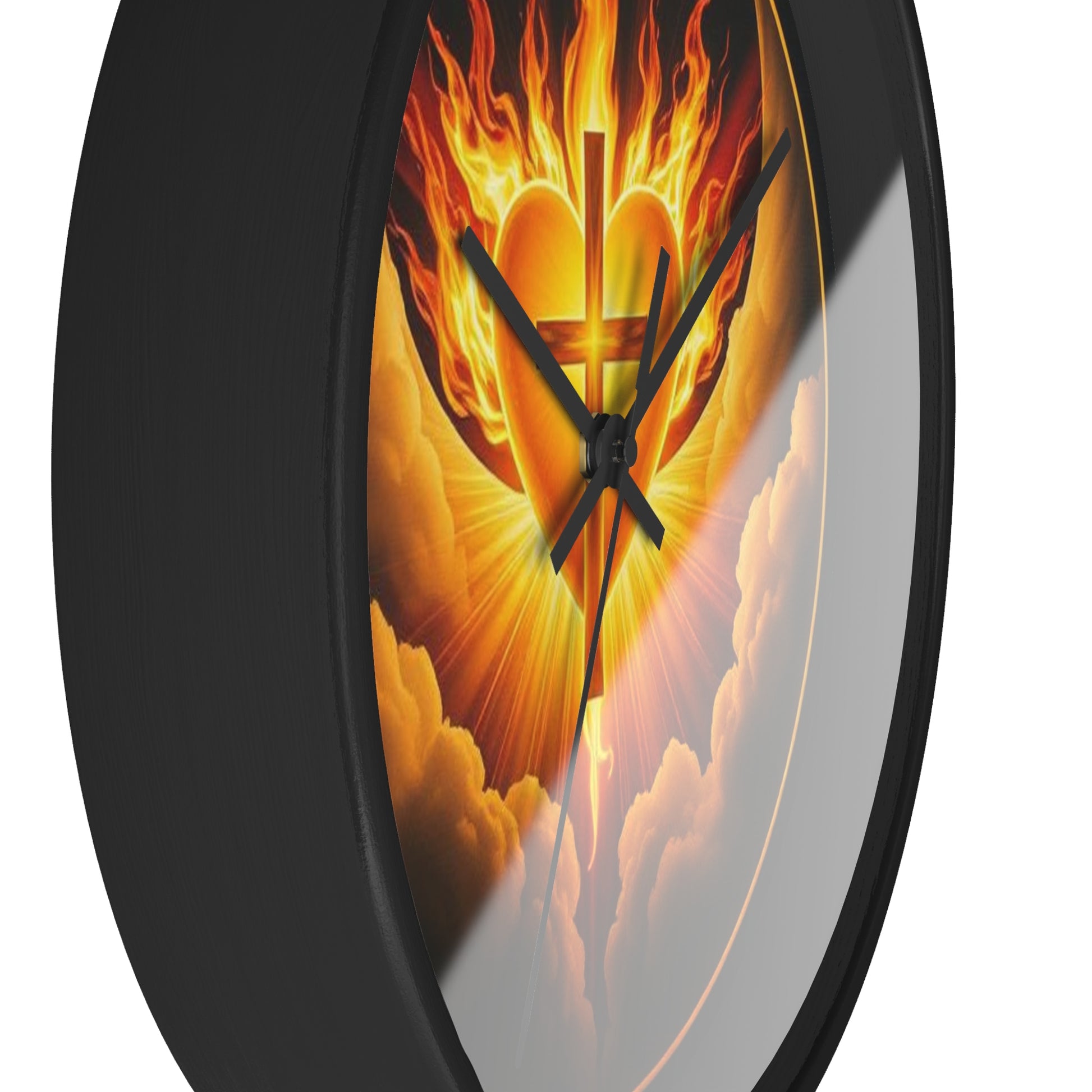 Flaming Heart & Cross Wall Clock – Passionate Faith Decor