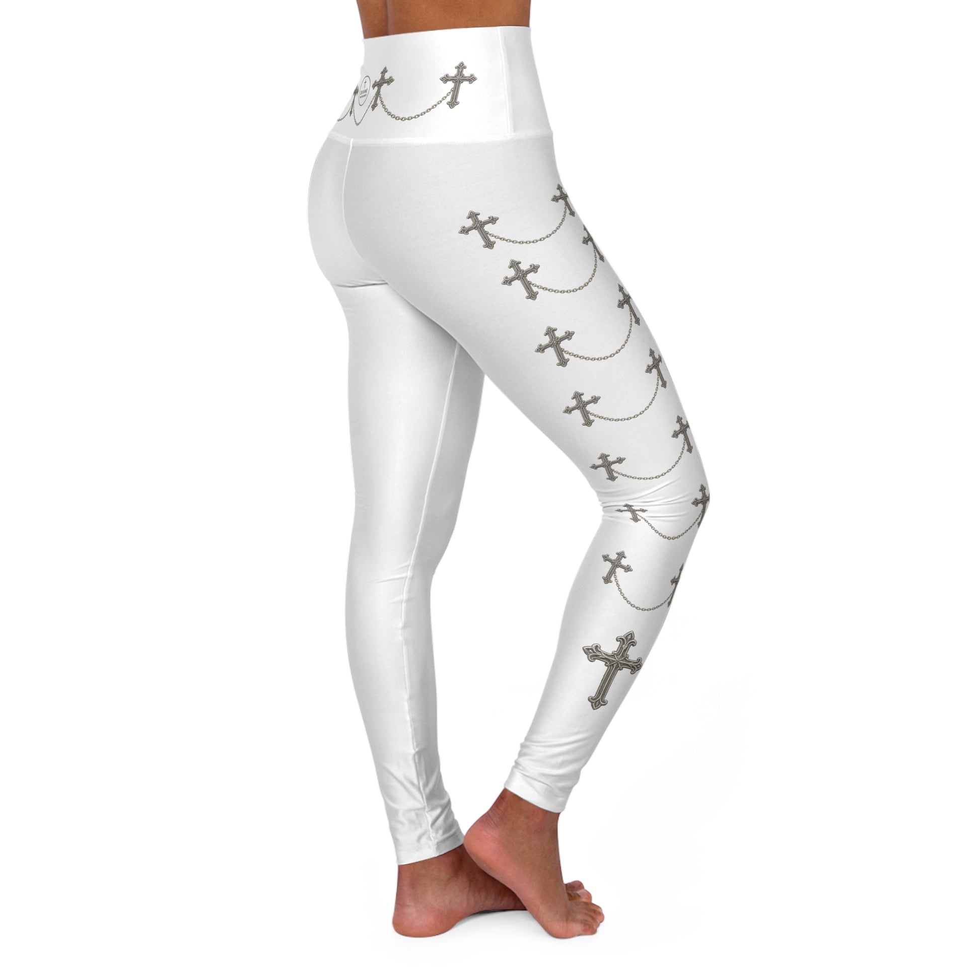 Move with grace and quiet strength in our Silver Sanctuary High-Waisted Yoga Leggings, detailed with elegant silver crosses and chain accents. This design symbolizes purity, clarity, and the unshakeable presence of God woven into every step you take. The smooth, sculpting fit supports your movement through every stretch, flow, and stride — while the radiant silver detailing adds a touch of heavenly refinement. Whether in the studio, on a walk, or living your everyday rhythm, these leggings serve as a shining reminder: you are supported, upheld, and empowered by the One who dwells within you. Soft. Strong. Spirit-anchored.