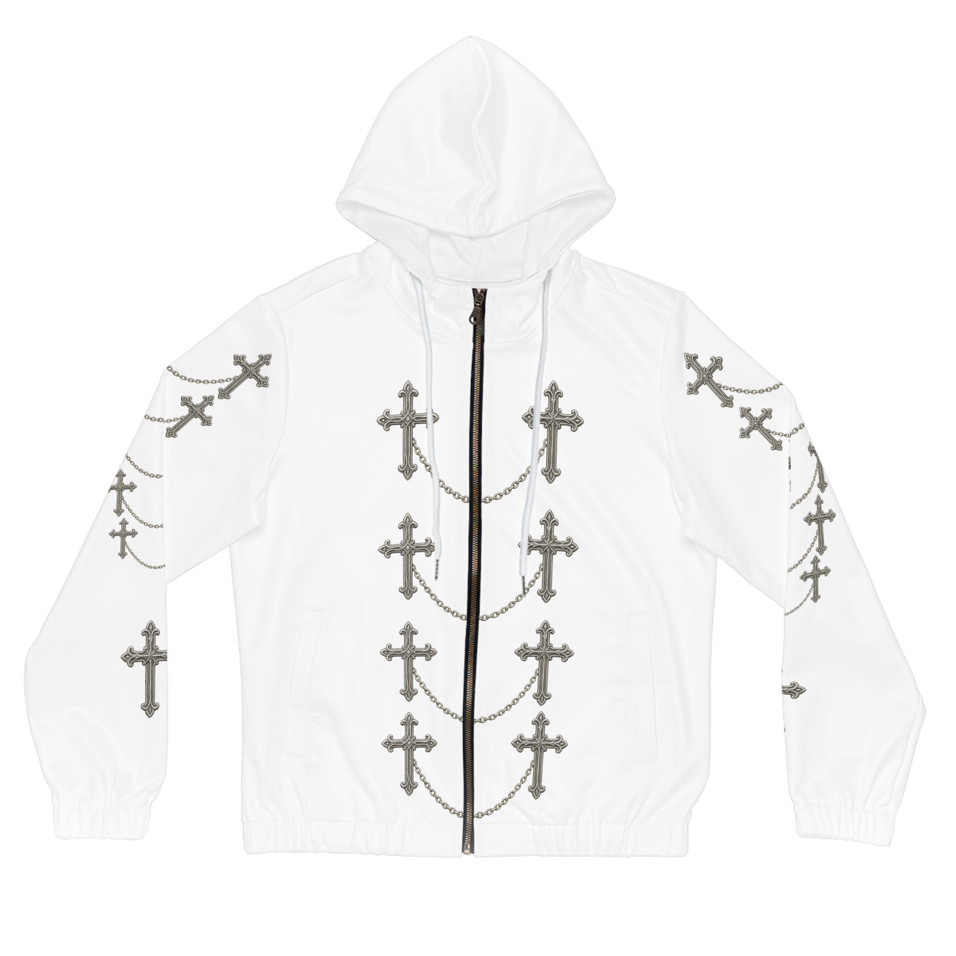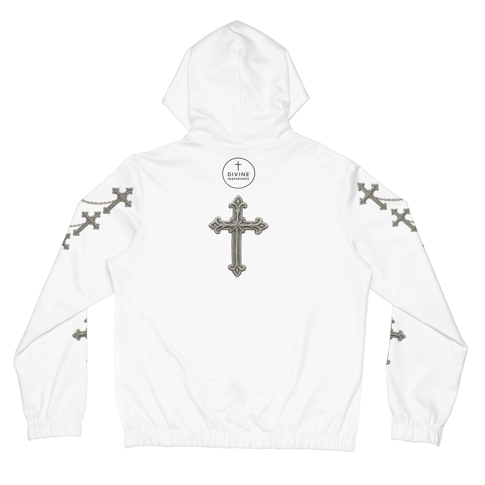 Step into divine protection and quiet radiance with the Silver Sanctuary Zip-Up Hoodie. Featuring the refined silver crosses and chain design, this piece reflects purity, guidance, and God’s watchful presence over every moment of your journey. Soft, warm, and effortlessly stylish, this hoodie is perfect for layering in any season. Whether zipped or worn open, it carries a serene confidence — a reminder that you are watched over, protected, and strengthened in every step you take. A subtle shine. A steady covering. A declaration of faith you can wear.