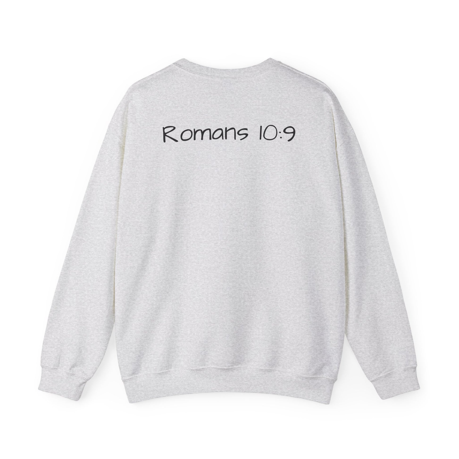 —designed in a raw, chalkboard-inspired style that makes a strong statement. On the back, a small gold cross accompanies Romans 10:9, a subtle reminder of God’s promise and the power of belief. Crafted for comfort, durability, and style, this pullover is perfect for casual outings, church events, or layering during cooler days while keeping your faith visible.