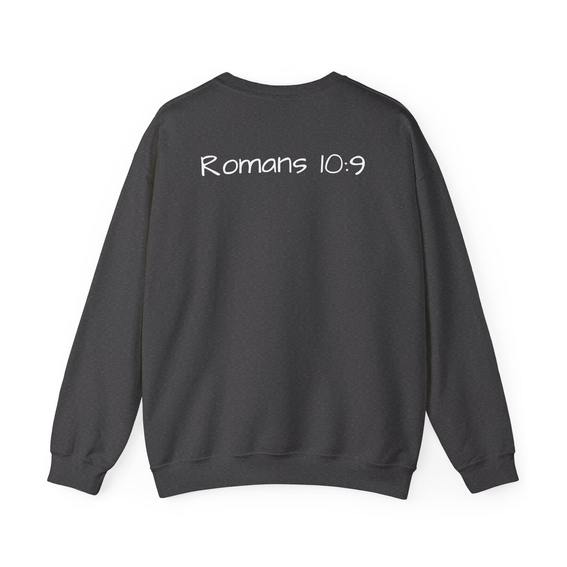 —designed in a raw, chalkboard-inspired style that draws attention and sparks conversation. On the back, a small gold cross is paired with Romans 10:9, a subtle yet powerful reminder of God’s promise. Crafted for warmth, comfort, and style, this pullover is perfect for casual wear, church events, or layering on chilly days while keeping your faith front and center.