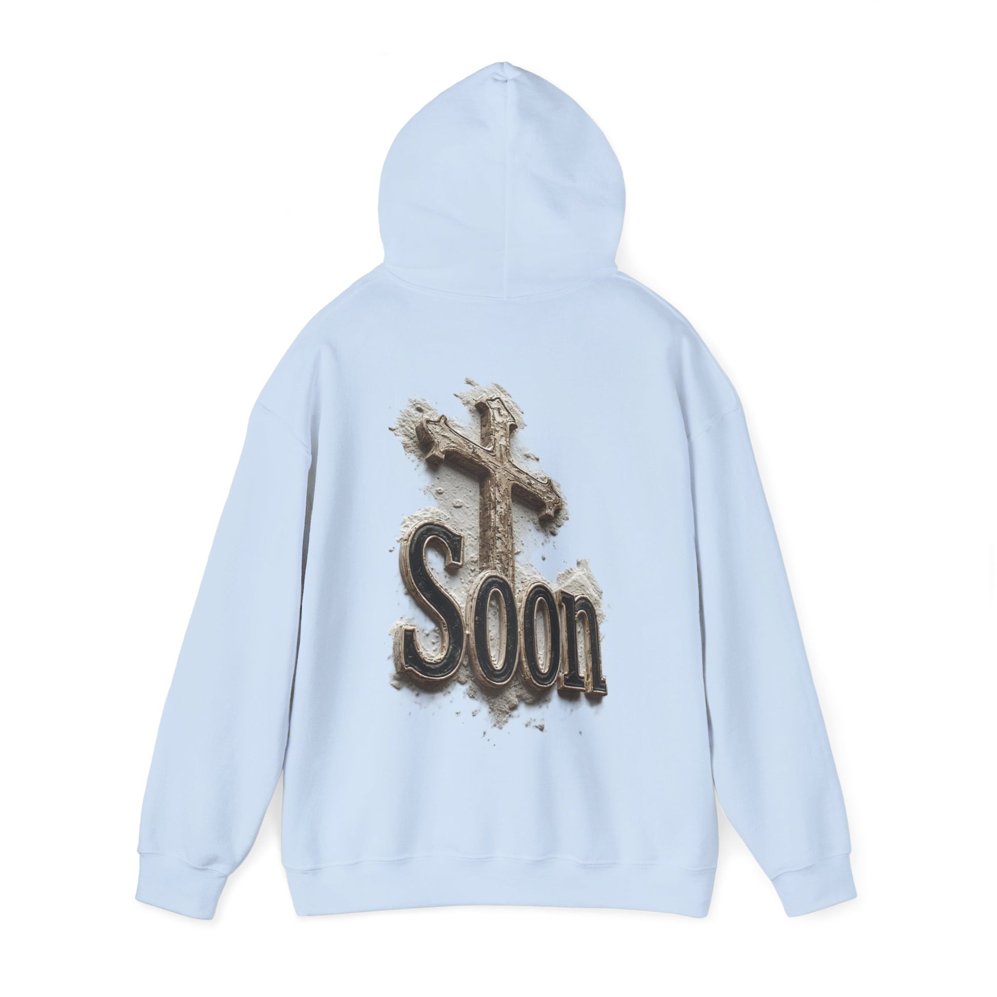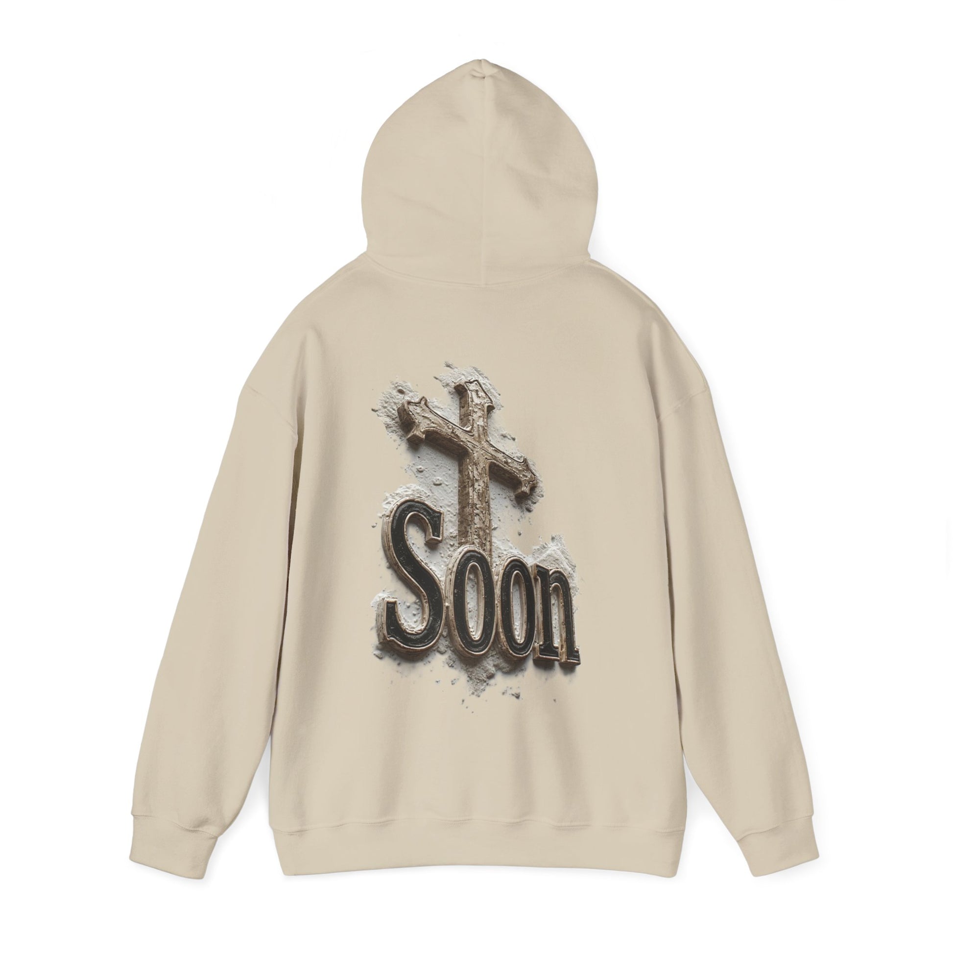 Stand ready and proclaim your hope in Christ with the “Soon” Cross Hoodie. Featuring a cross emerging from sand and stone, this design symbolizes the believer’s steadfast anticipation that Jesus is coming soon. Cozy, durable, and designed for everyday wear, this hoodie is perfect for cooler weather, outreach events, or simply living out your faith in bold style. Carry the message of His return wherever you go.