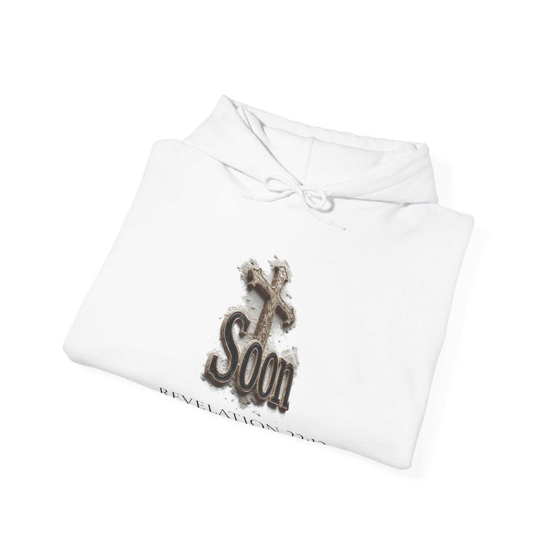 Soon: Revelation 22:12 Cross Hoodie – Men’s Christian Faithwear (Dark Lettering)