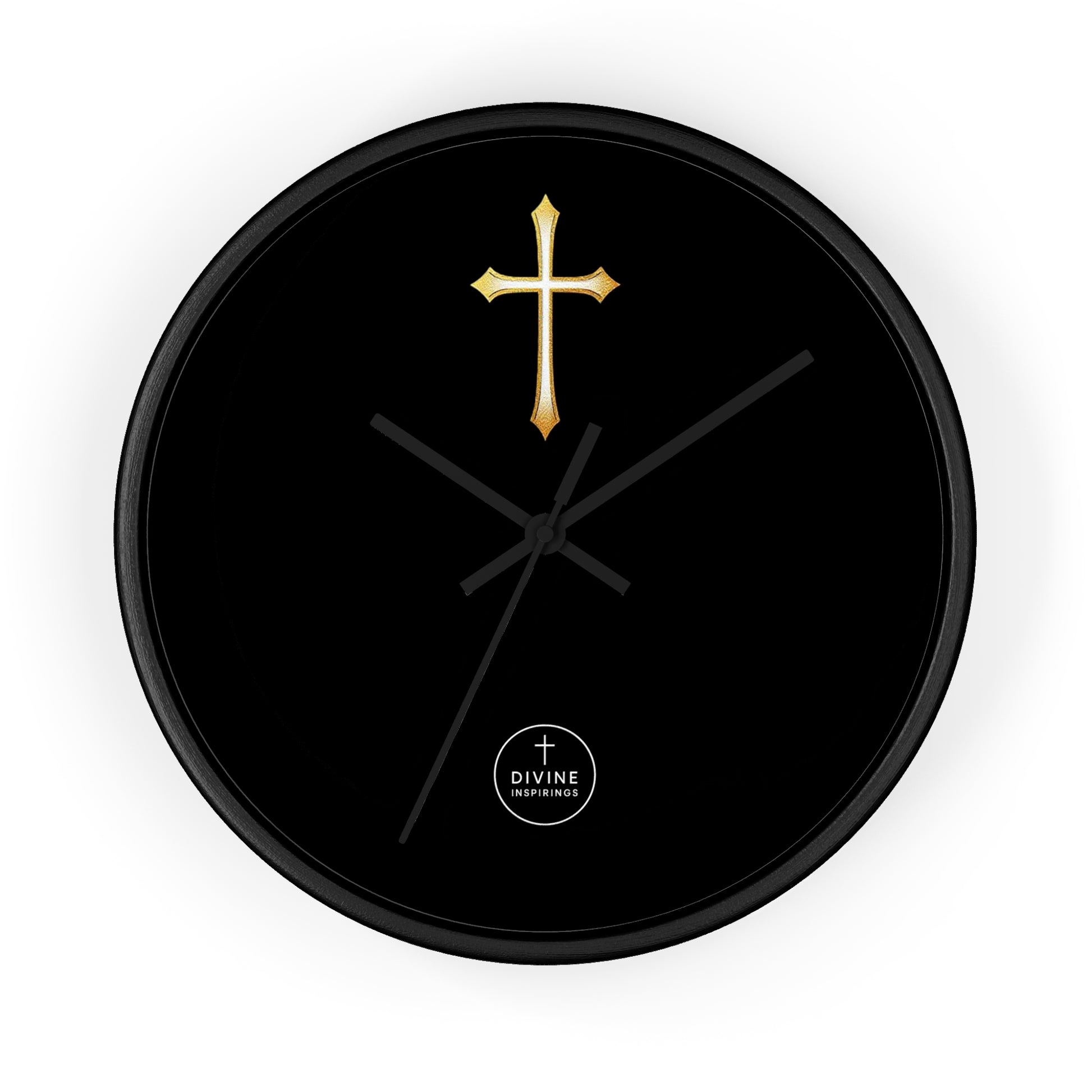 Stunning Gold Cross Wall Clock in Black – Elegant Christian Home Decor