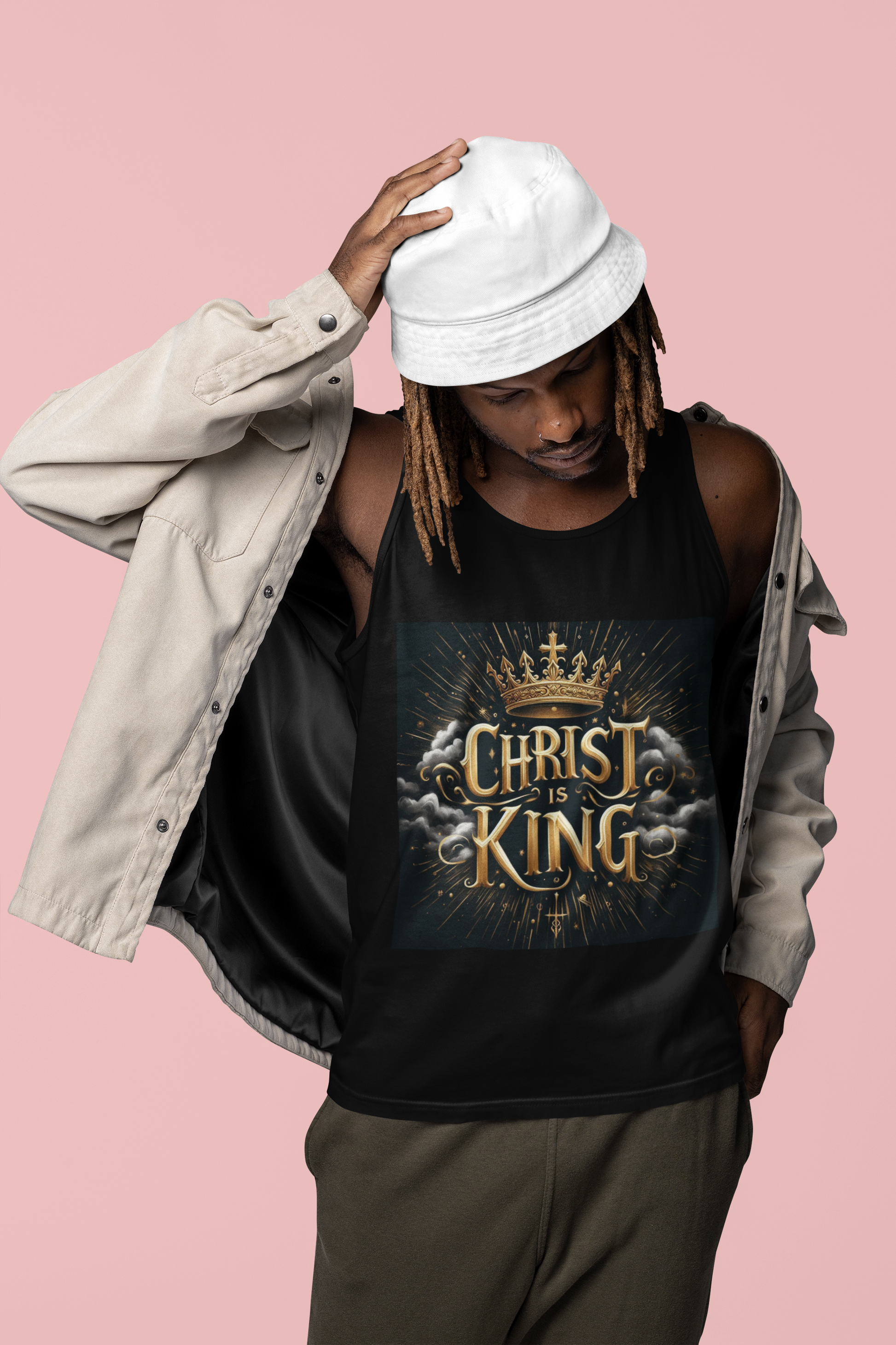 Wear your conviction like armor. The Christ the King men’s tank top declares your allegiance to the true source of power. Strong lines, bold gold lettering, and a design that commands respect — perfect for the man who walks in confidence, yet bows only to the King of Kings. Made for workouts, warm days, and warriors of faith.
