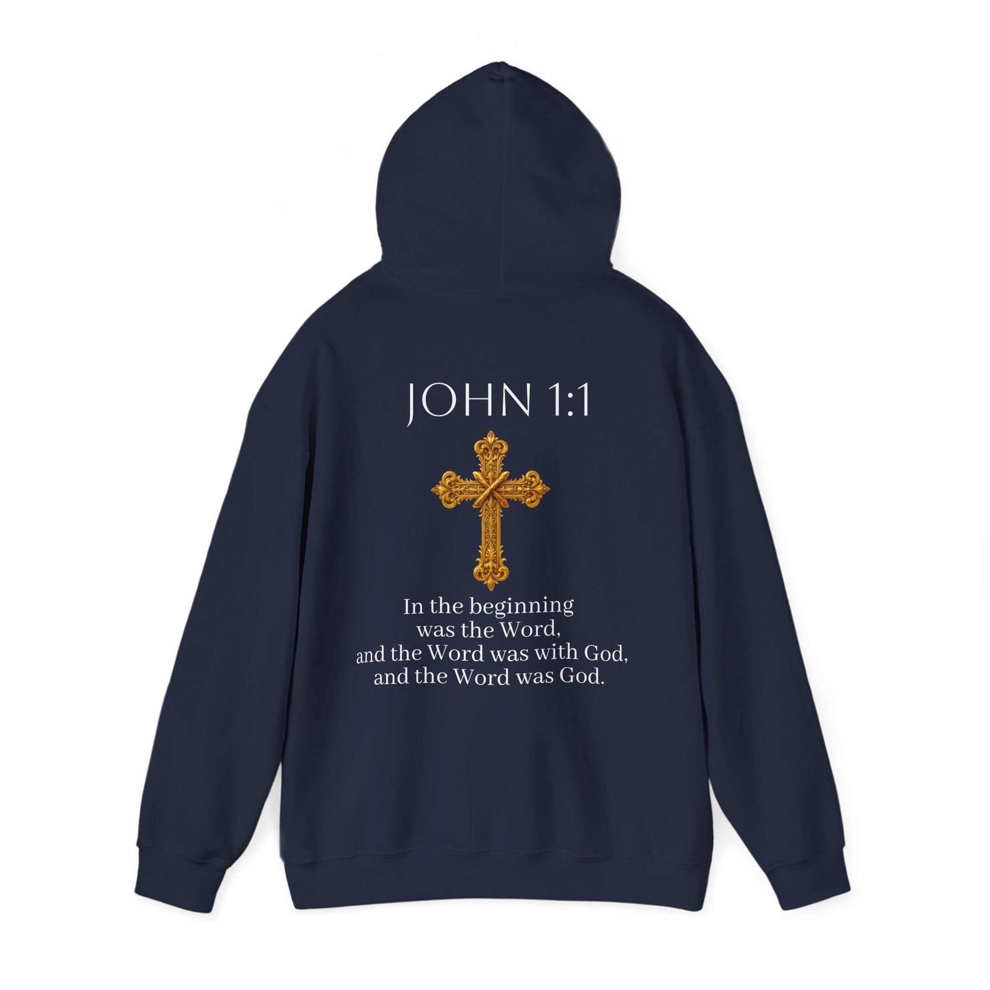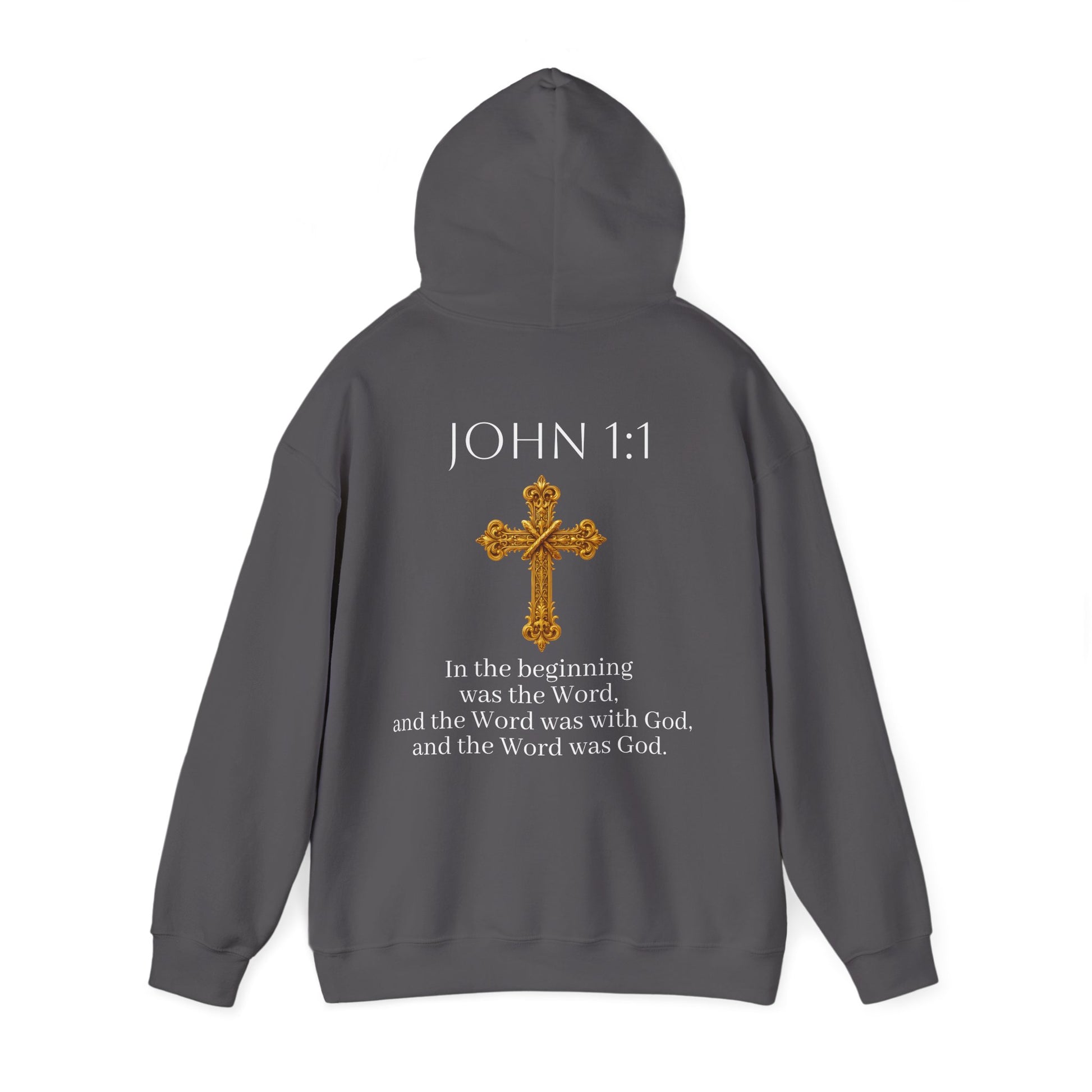 “The Word Eternal” – Men’s Christian Hoodie with White Lettering (John 1:1)