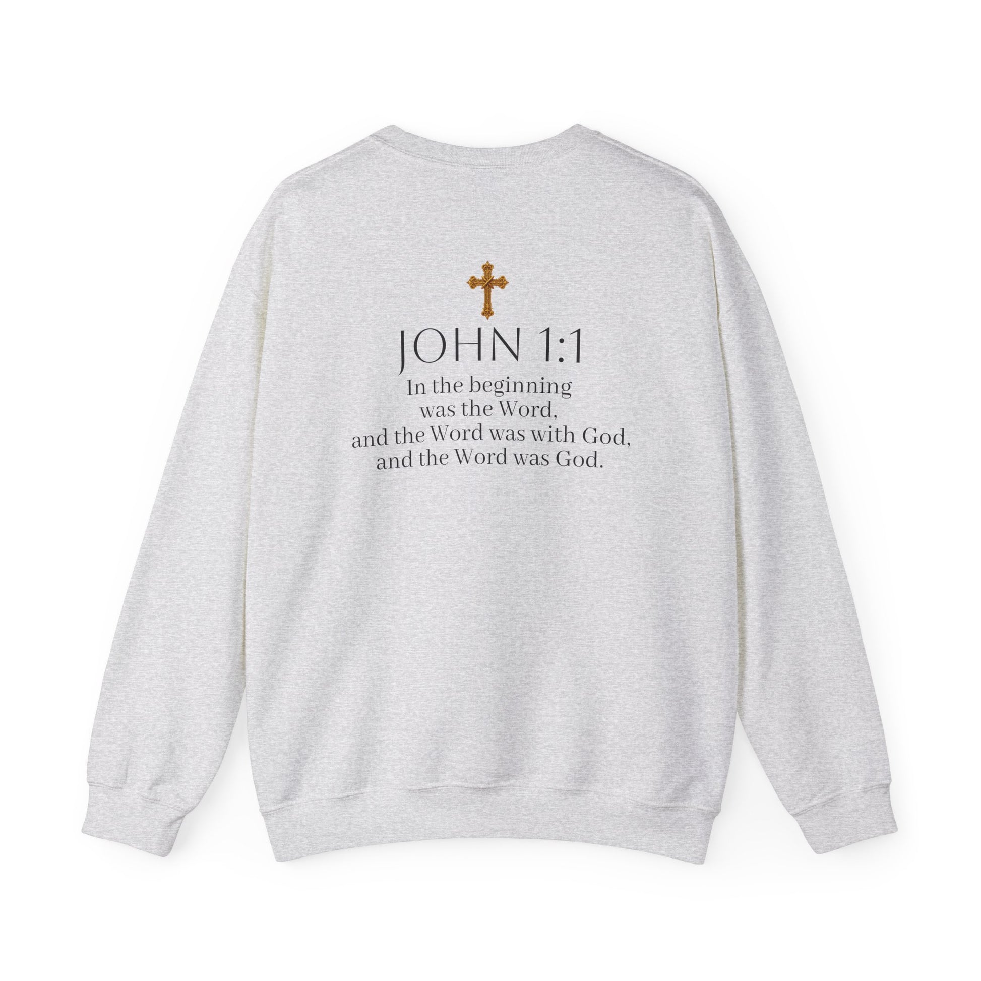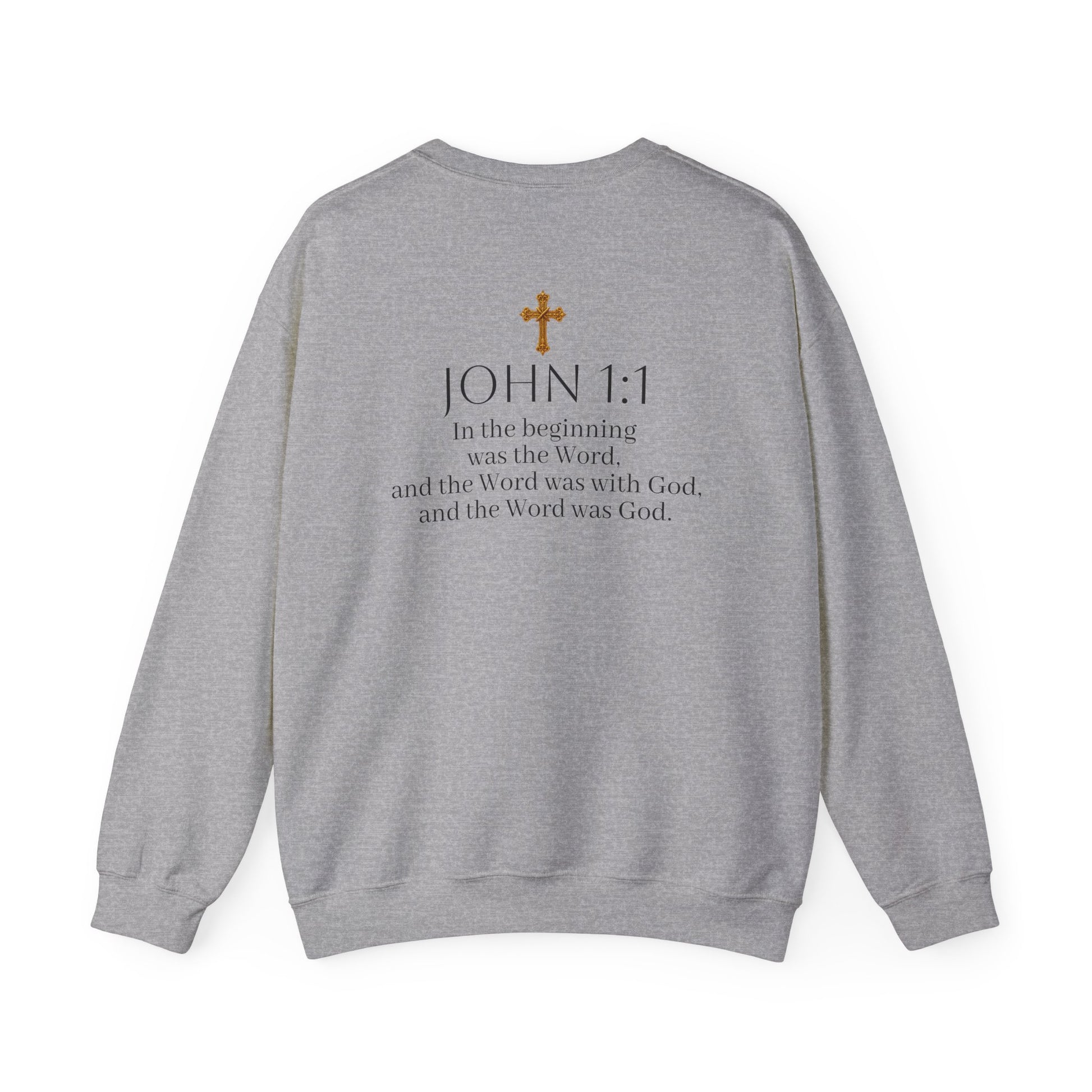 “The Word Eternal” – Men’s Christian Sweatshirt with Bold Dark Lettering (John 1:1)