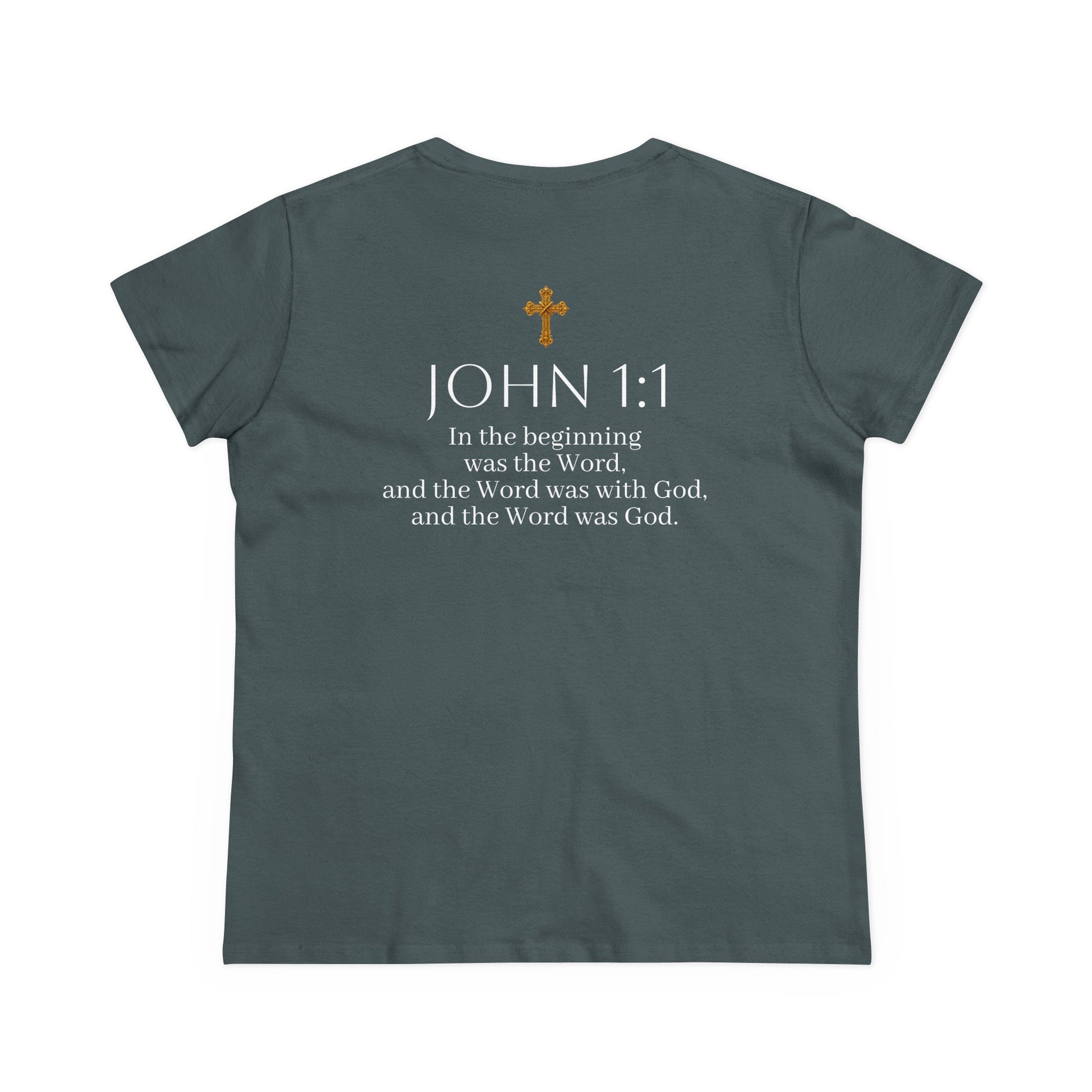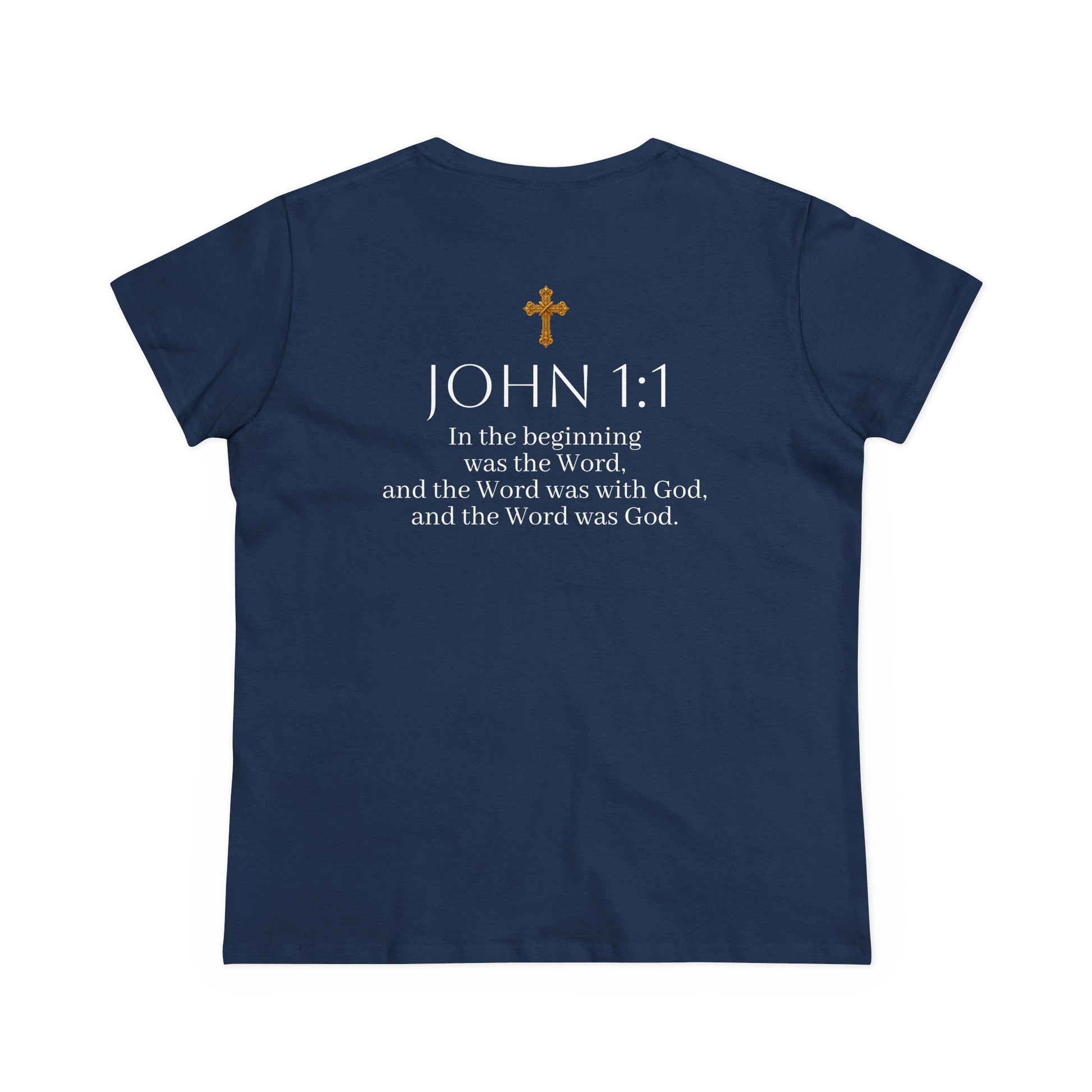 “The Word Eternal” – Women’s Christian Tee with White Lettering (John 1:1)