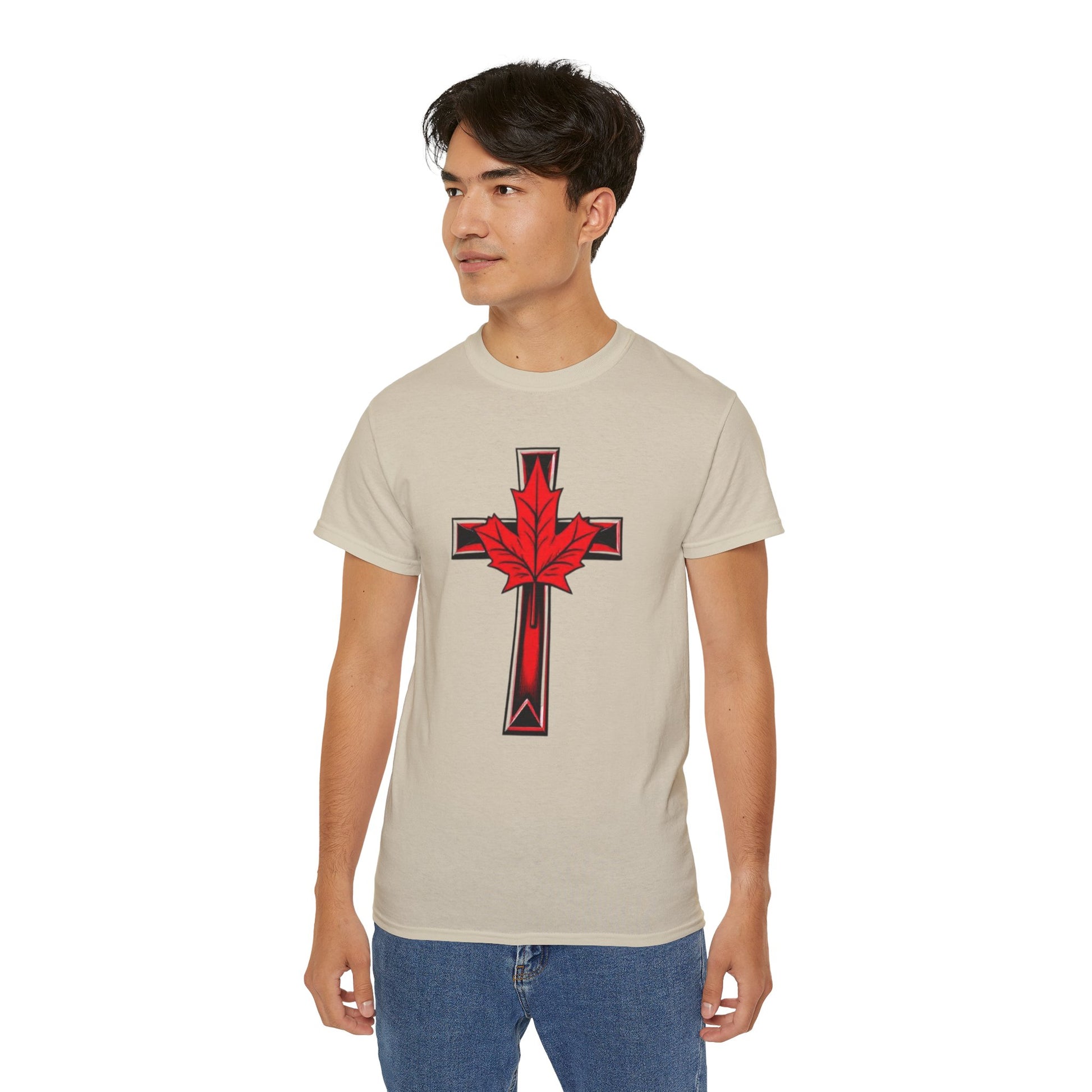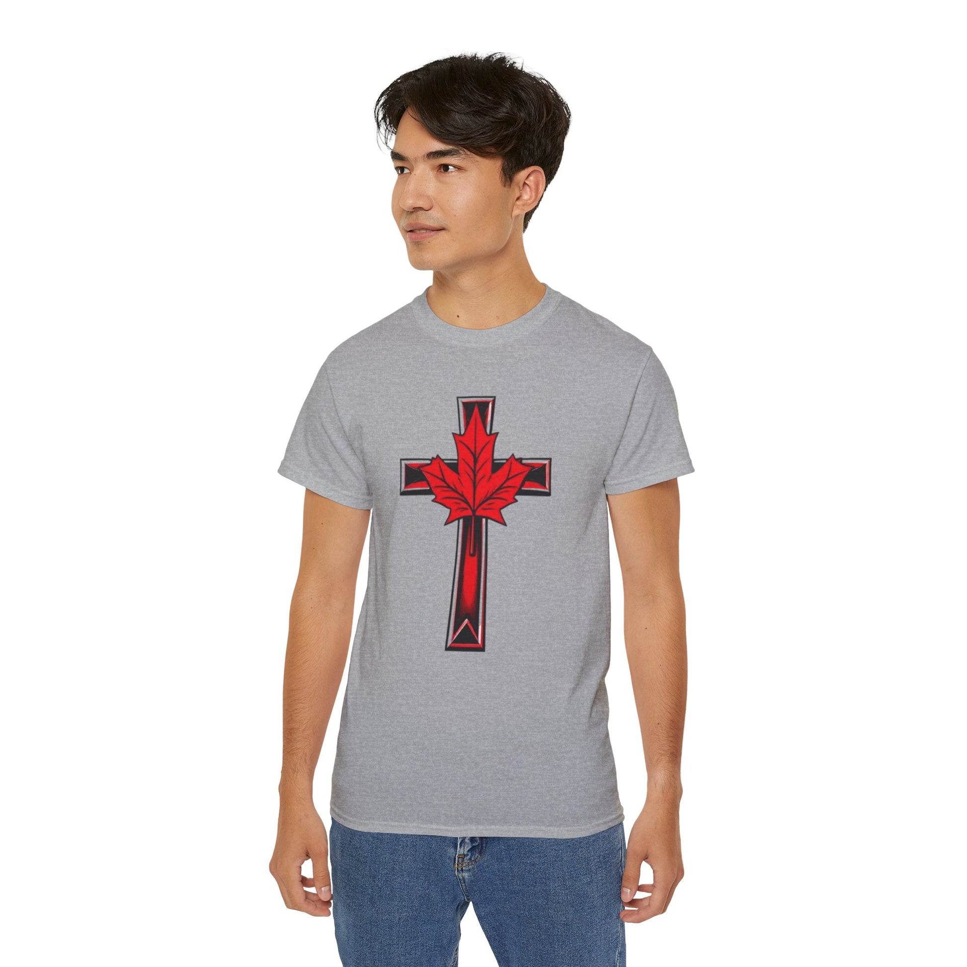 Stand firm in your faith and your roots with this bold men’s tee featuring a cross seamlessly blended with the Canadian maple leaf. Whether you're at church, at work, or out with friends, this shirt speaks loud and clear: Christ reigns above all, and Canada is under His banner. Lightweight and comfortable, it's a simple yet powerful expression of godly patriotism.