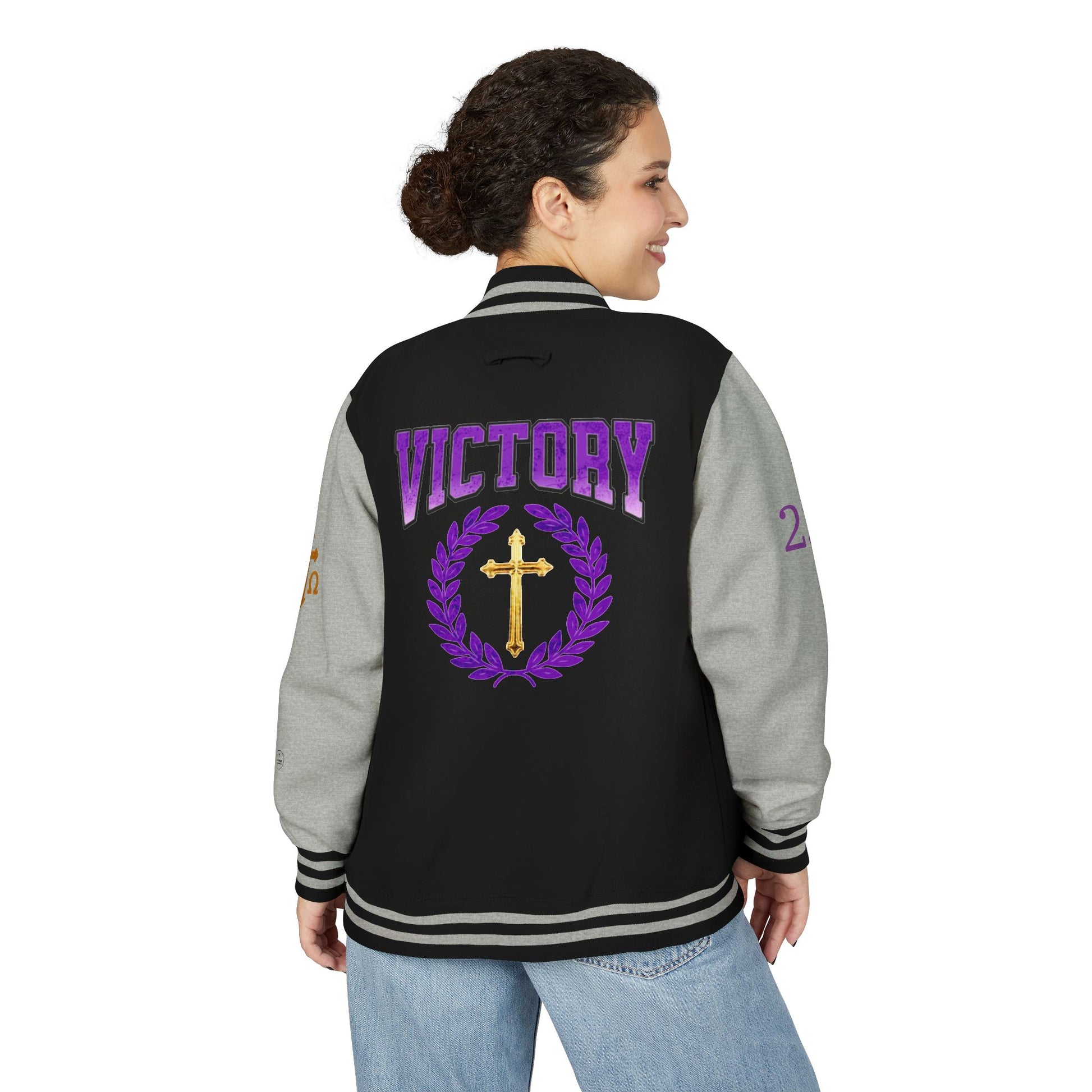 Victory in Christ Women’s Letterman Jacket – Grace in Triumph