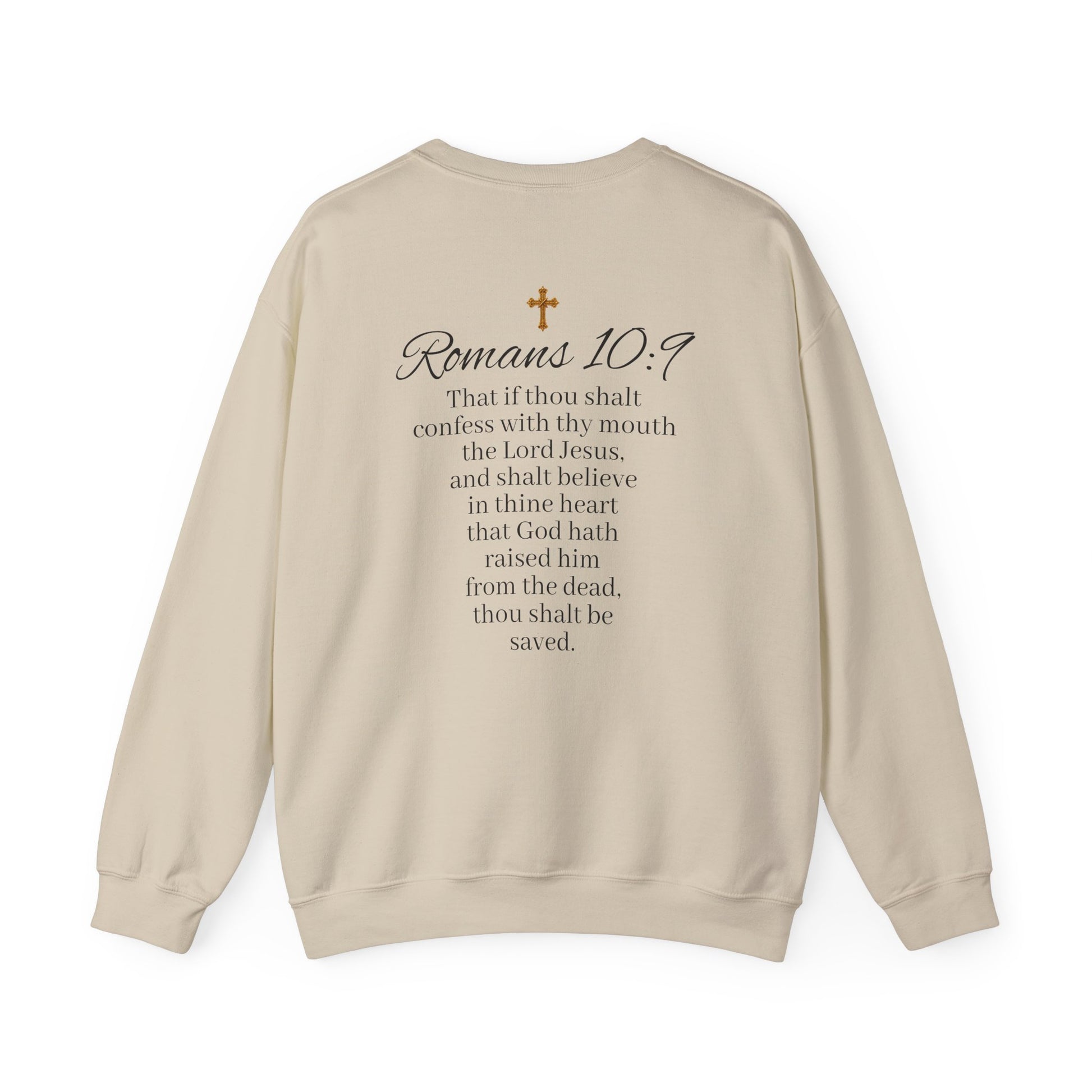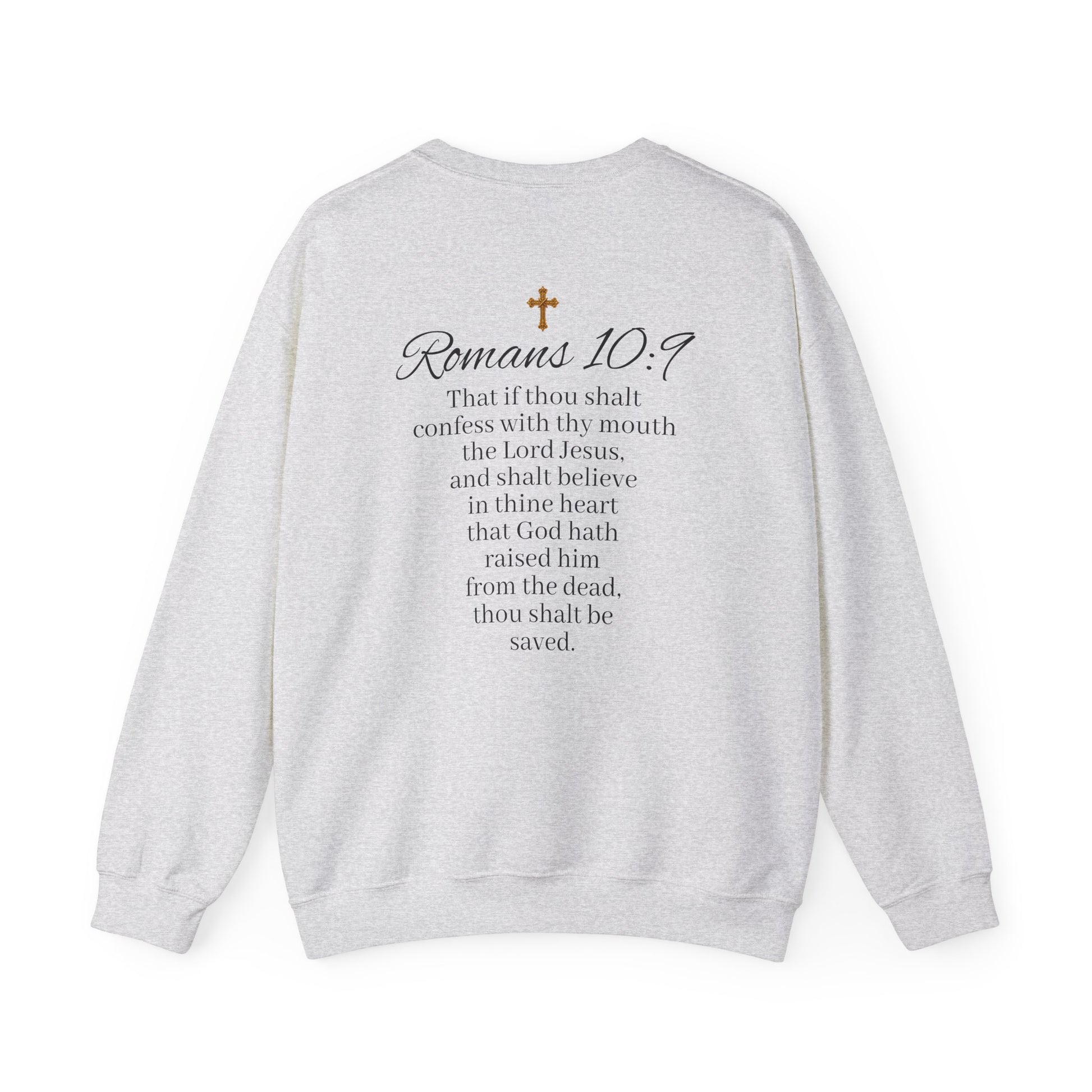 Wrap yourself in faith with this beautifully designed women’s Christian sweatshirt. On the front, the word Believe with praying hands reminds you to keep your heart lifted to God. On the back, Romans 10:9 is boldly displayed: “If you declare with your mouth, ‘Jesus is Lord,’ and believe in your heart that God raised him from the dead, you will be saved.” Soft, comfortable, and faith-strong, this sweatshirt is more than apparel—it’s a witness. Wear your belief proudly and let your life reflect the power of Christ’s promise.