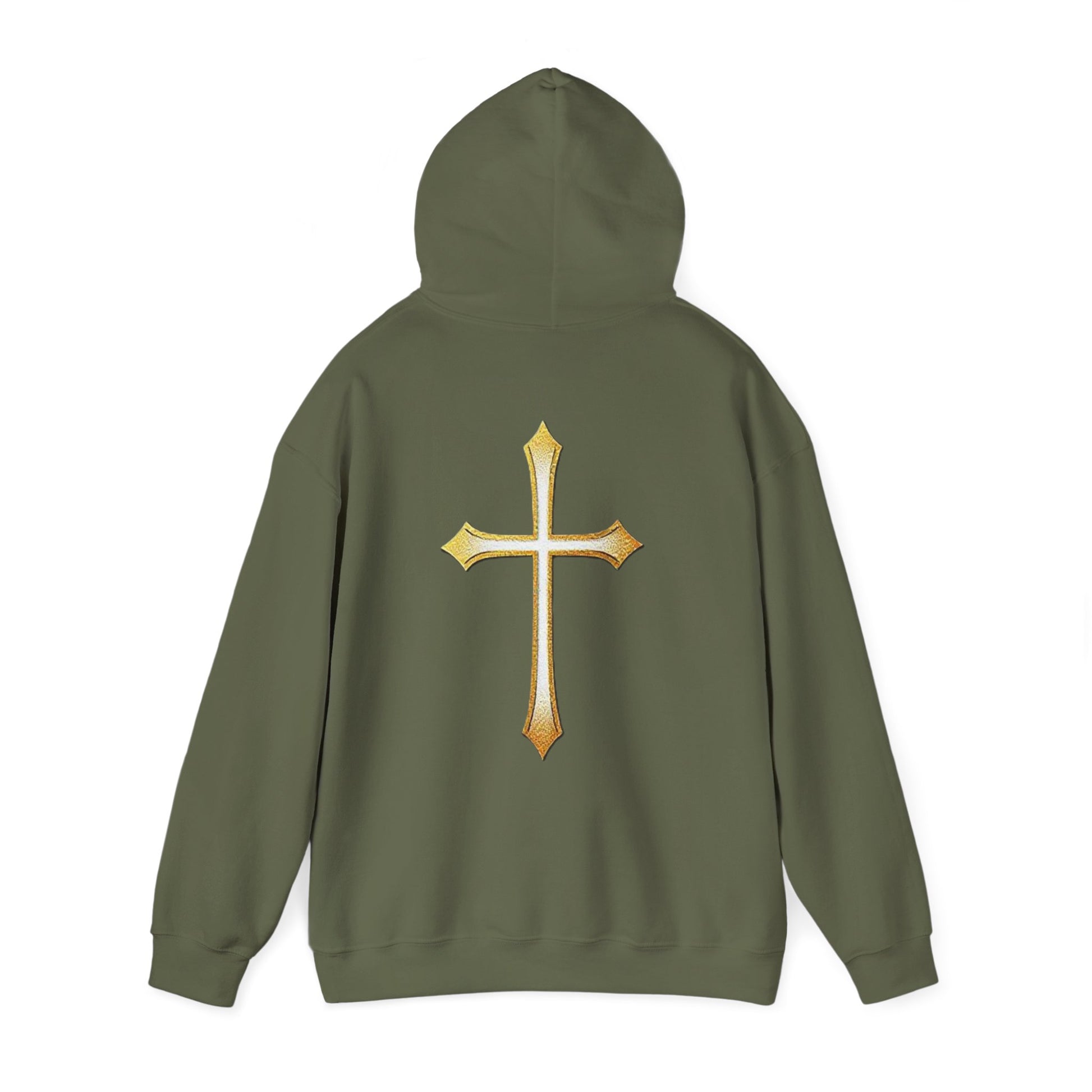 Women’s Gold Cross Hoodie – Christian Faith Hoodie with Front & Back Design