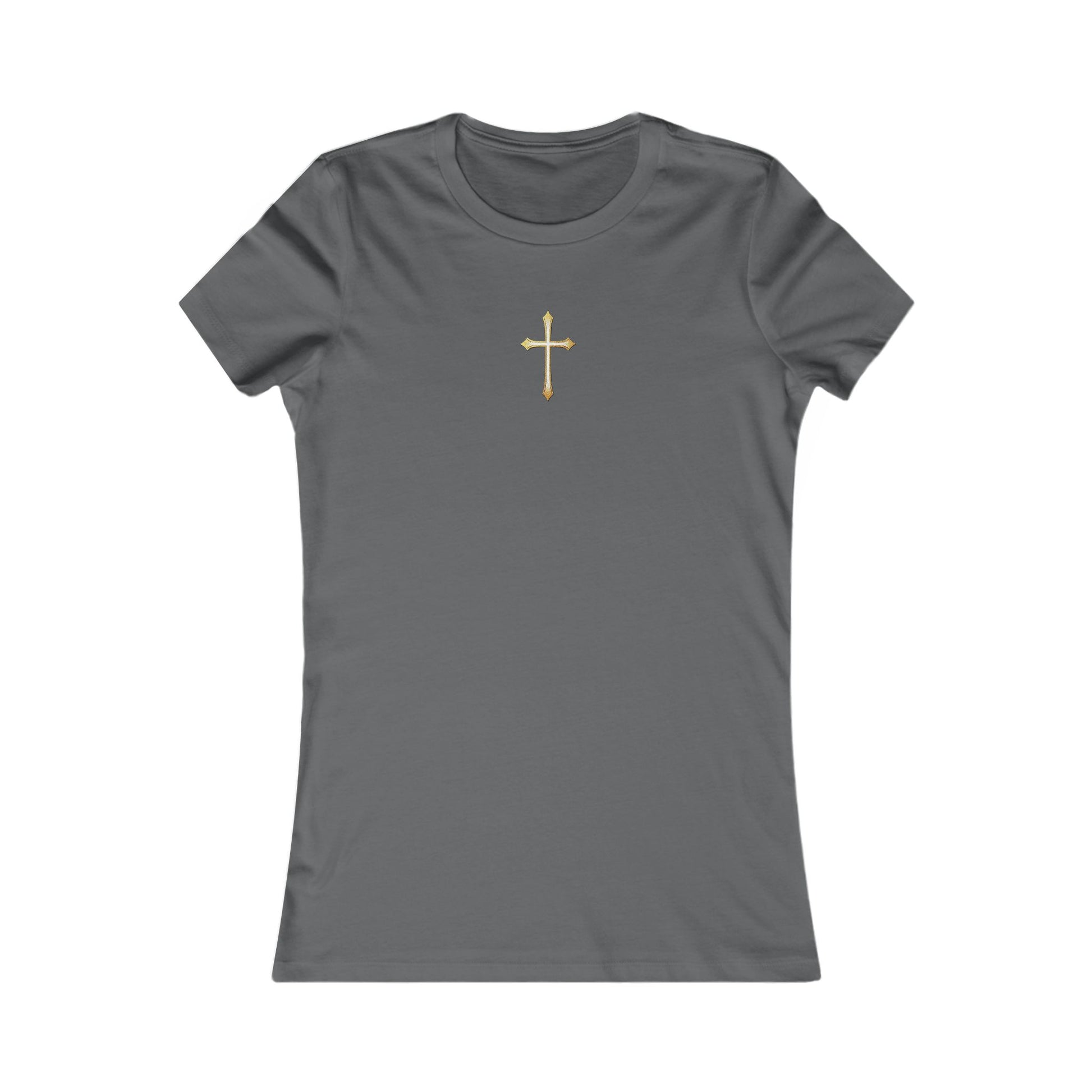 Women’s Gold Cross Pendant-Style Favorite Tee – Elegant Christian Faith Shirt