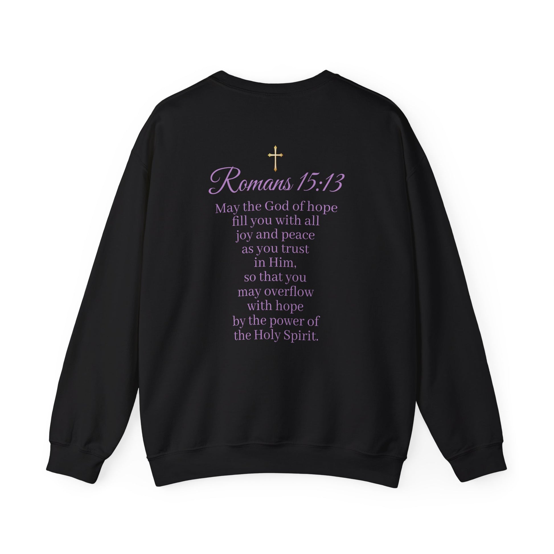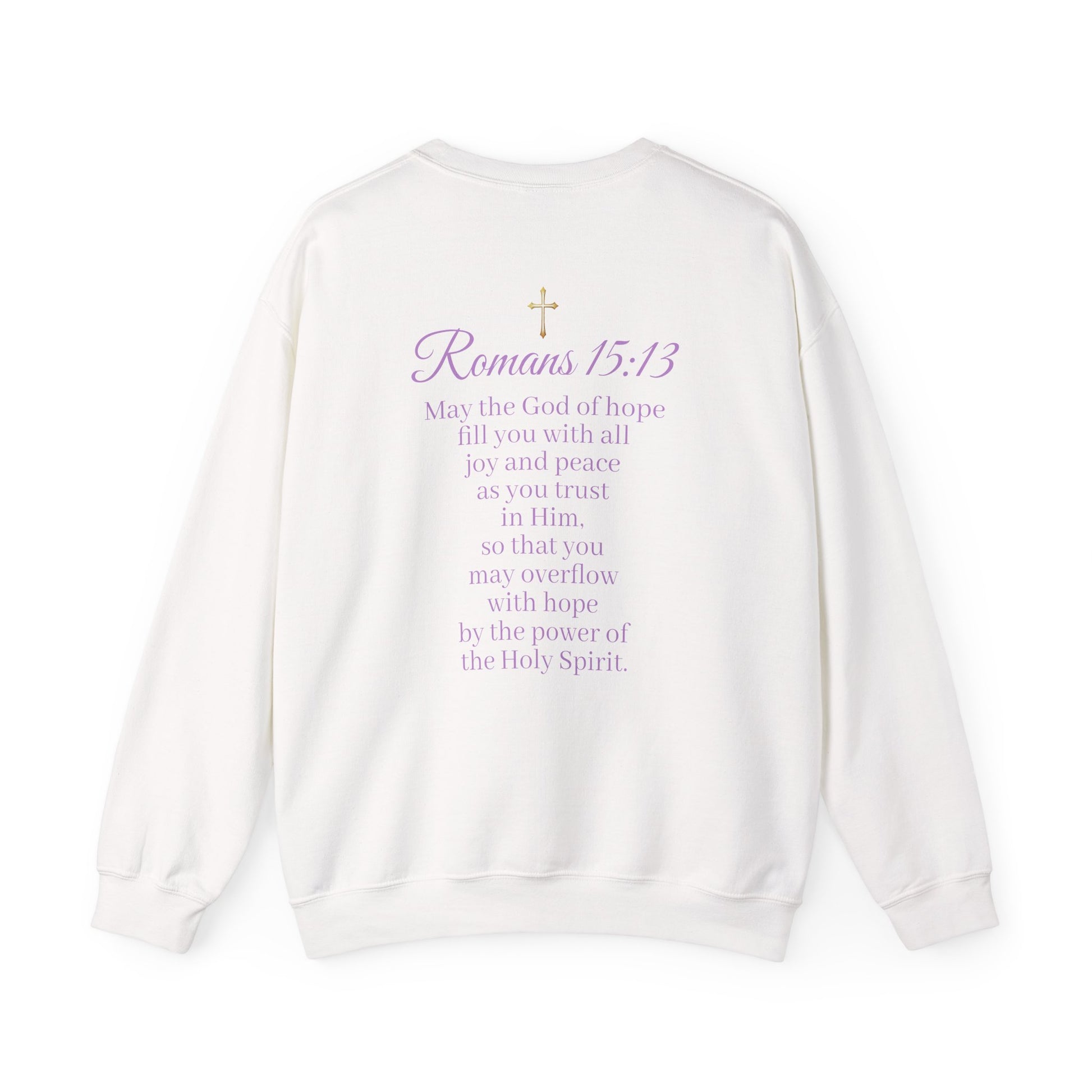 Stay cozy and inspired with this feminine “Hope” sweatshirt. Featuring HOPE stylishly on the front and the full verse Romans 15:13. A perfect choice for casual wear, church events, or as a heartfelt gift. Soft, flattering, and encouraging—this sweatshirt is a wearable reminder of God’s joy and peace.
