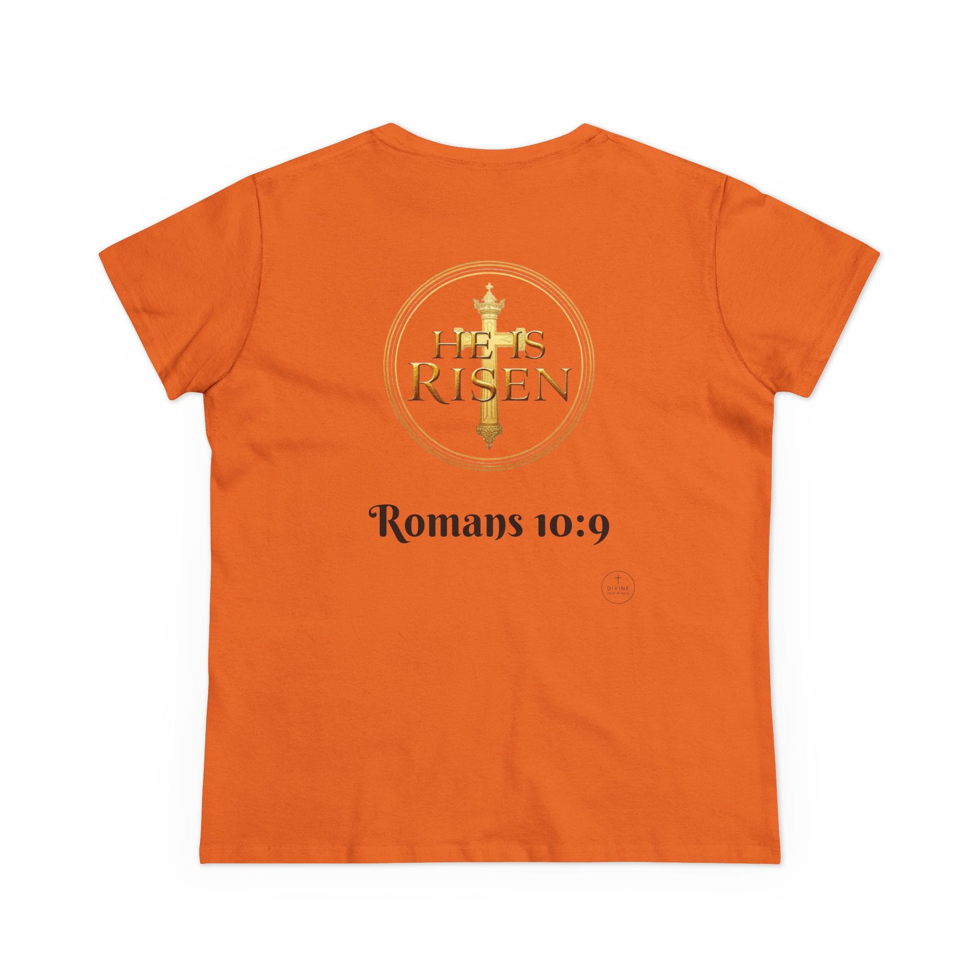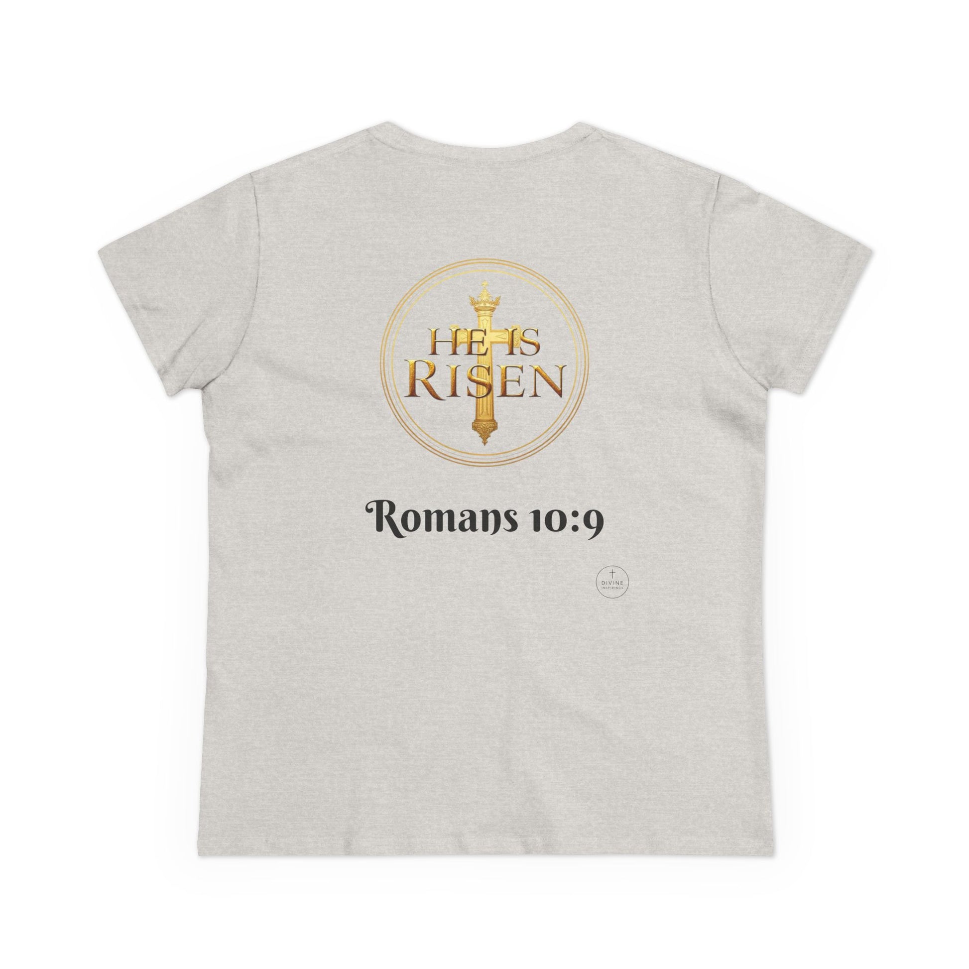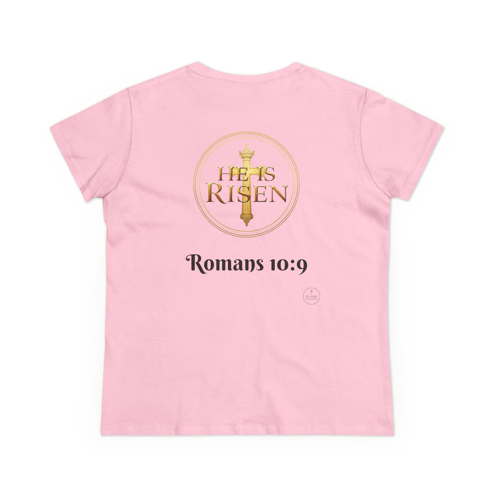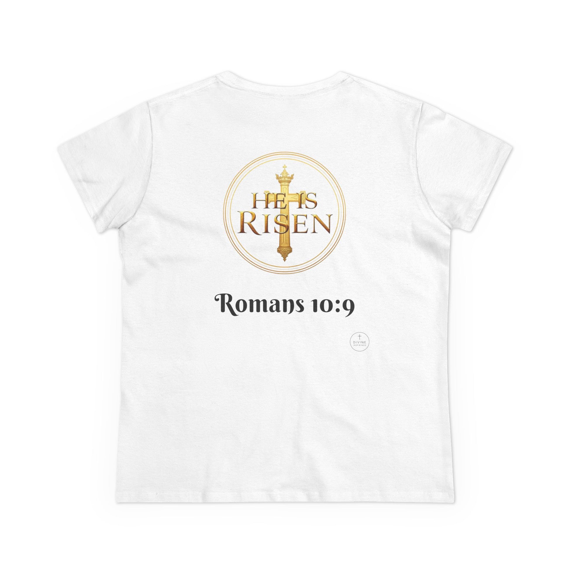 Share your faith with grace and strength in this Women’s T-Shirt, designed for light-colored apparel to let the message stand out with clarity. On the front, Jesus Is Lord with the cross invites the world to hear the truth you live by. On the back, He Is Risen proclaims the resurrection power of Christ. Together, the design carries the eternal promise of Romans 10:9.Crafted with a flattering fit and soft, breathable fabric, this tee combines comfort with bold testimony. Whether at church, in fellowship, or out in daily life, this shirt makes your faith beautifully visible. Declare it. Believe it. Live it.