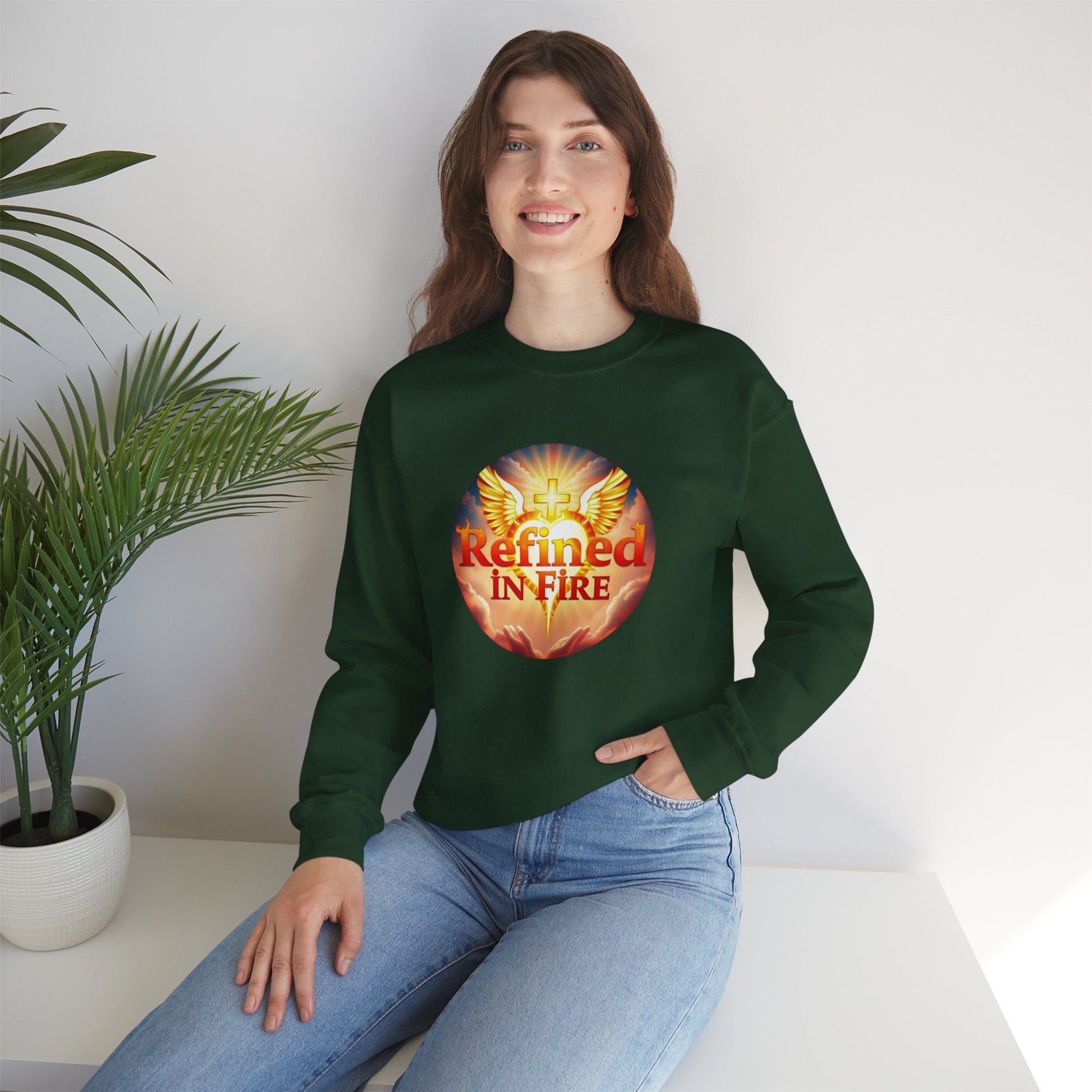 Women’s “Refined in Fire” Christian Sweatshirt – Bold Flame Design Pullover